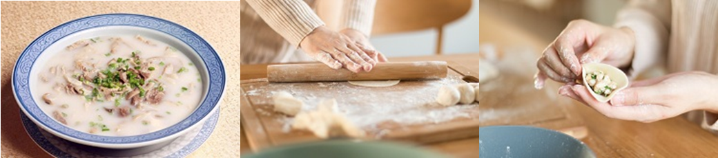冬至这天,我们有吃汤圆和饺子的习俗。热气腾腾的蓝鸟家宴上,都是地道的羊肉汤和新鲜擀制的水饺。